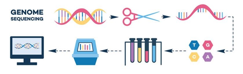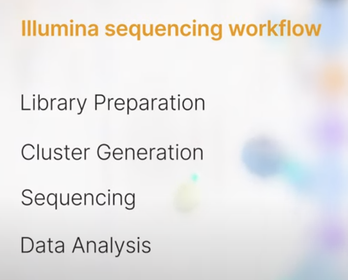 Below is also a figure highlighting the different steps of illumina sequencing, starting with the randomly fragmented genomic DNA and ending with sequence data! The figure is from this paper if you want to see more: https://www.sciencedirect.com/science/article/pii/S1359644608001244#fig3