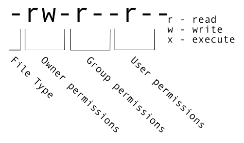 Here the three positions that relate to the file owner are rw-. The r means that you have permission to read the file, the w